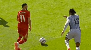 第63分钟,利物浦后场断球快速反击,索博斯洛伊分球,萨拉赫右路内切左脚打入球门右下角,4比1!